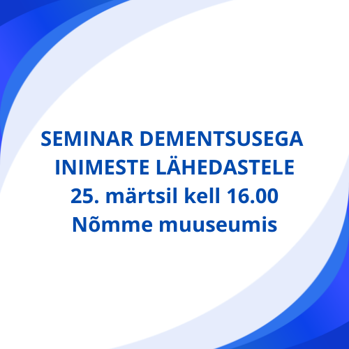 Seminar lähedastele: DEMENTSUSEGA INIMESE TOIMUTULEKU TOETAMINE JA JURIIDILINE TEAVE