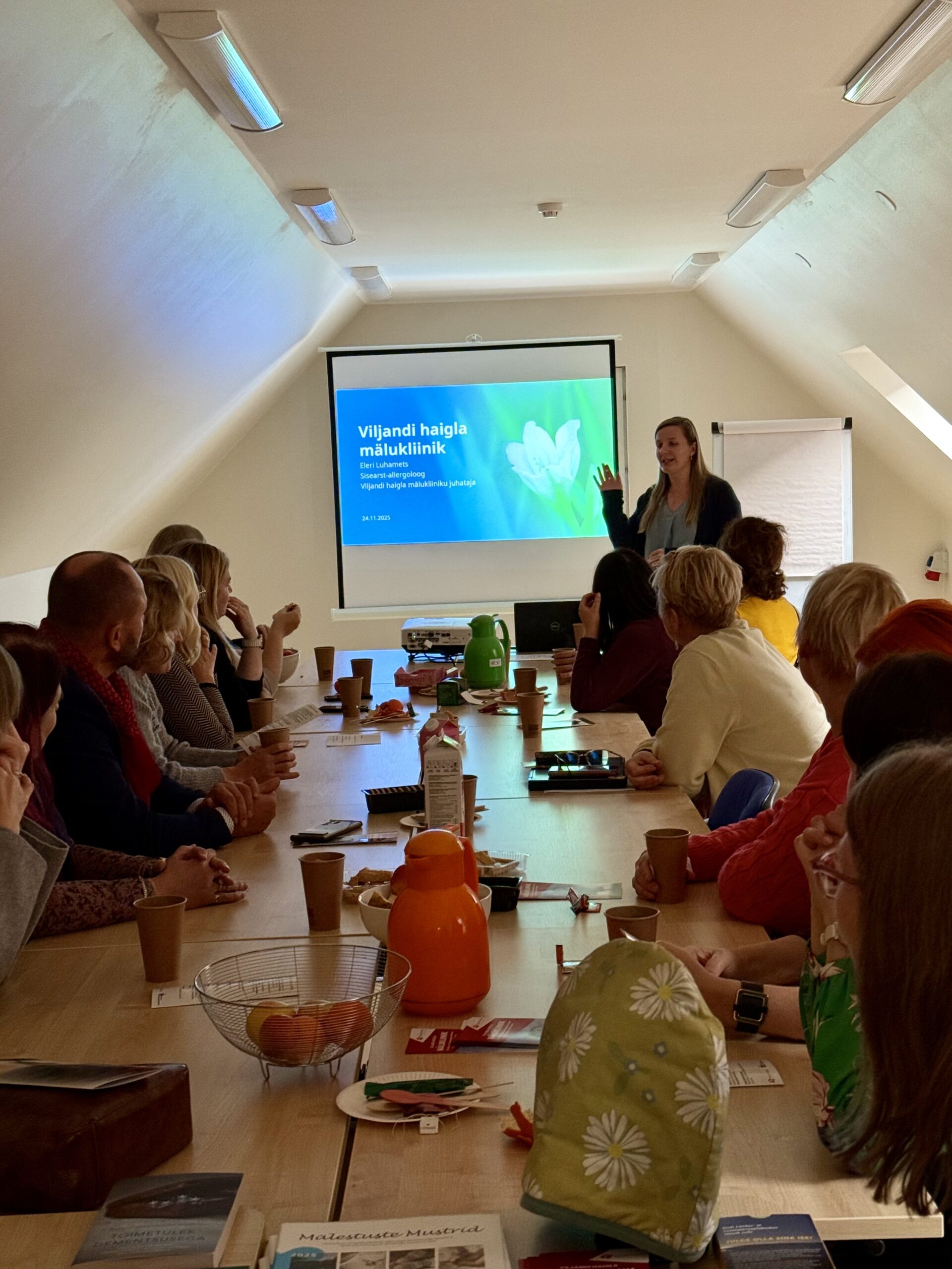 Seejärel suunduti Jämejala tegevusmajja, kus pidas ettekande Viljandi haigla mälukliiniku juhataja. Ettekandes anti ülevaade mälukliiniku tööst, dementsuse diagnostikast, ravivõimalustest ning patsiendi suunamisest neurodegeneratiivsete haiguste kahtluse korral. Käsitleti nii krooniliste haiguste mõju kognitiivsele tervisele kui ka uuemaid teaduspõhiseid ravivõimalusi ning nõuandeid aju tervise hoidmiseks.